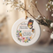 - Premium glossy white ceramic ornament, approximately 3 inches in diameter with a top hanging hole.