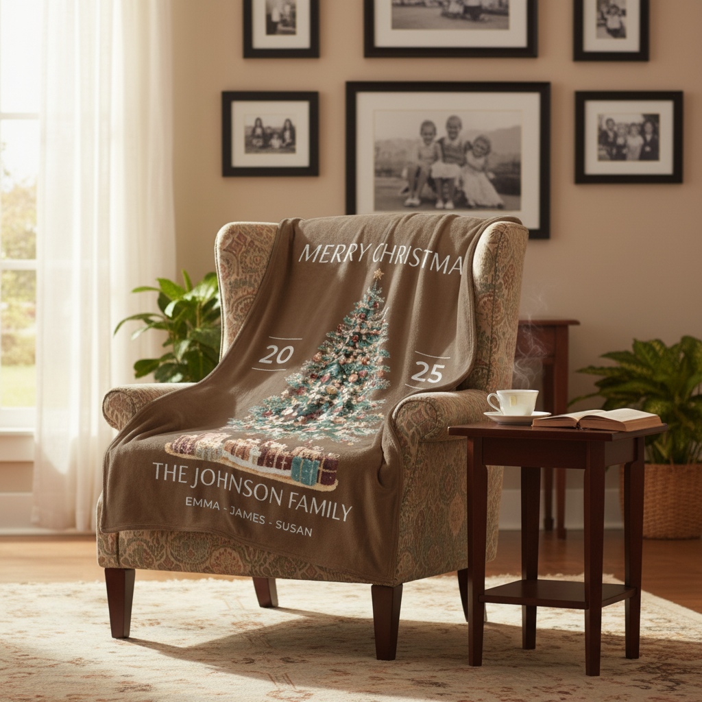 Wrap your family's legacy in unparalleled comfort. This personalized multigeneration blanket isn't just a cozy throw—it's a beautiful tapestry of your shared history, custom-made to celebrate the branches of your family tree.