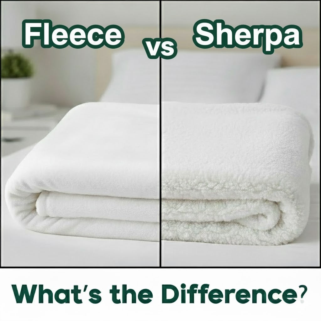 Sherpa Blanket: Features a high-quality silky smooth front and a premium fluffy sherpa back (100% polyester). Heavier at 420 gsm with a 1 cm thickness for exceptional warmth.