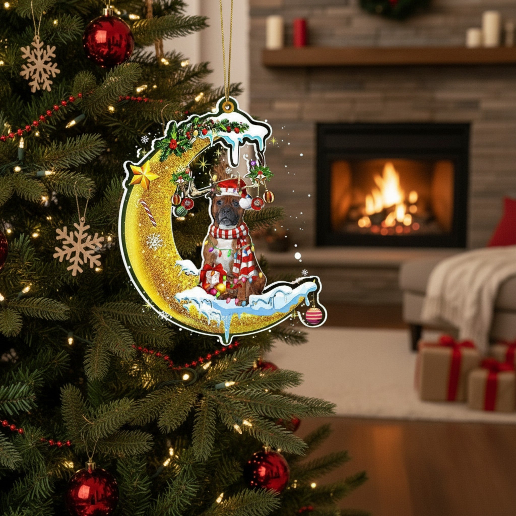 Personalized Pet Memorial Ornament - Custom Dog Christmas Moon & Star Keepsake