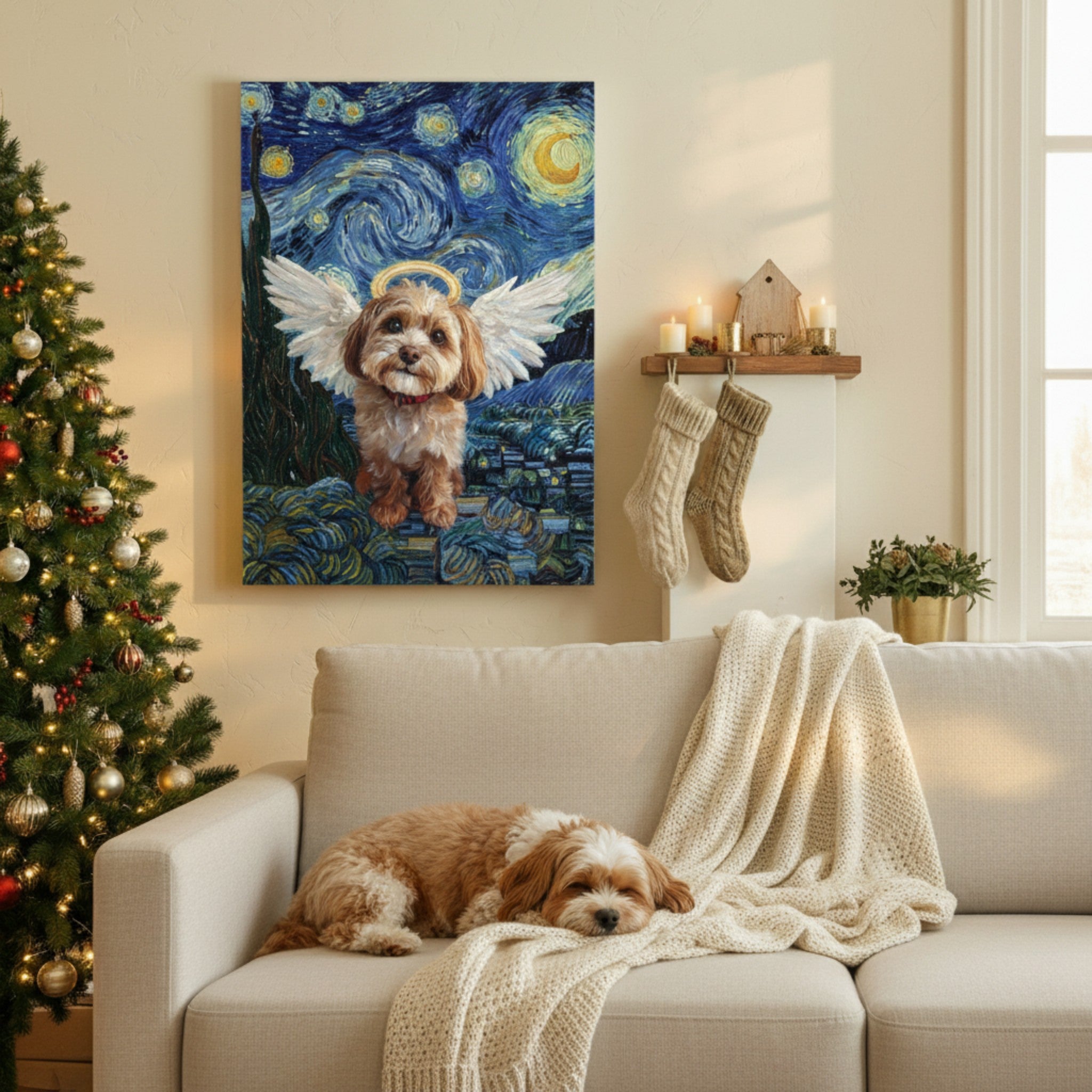 Custom Pet Portrait Canvas - Starry Night Style Angel Dog Remembrance Gift