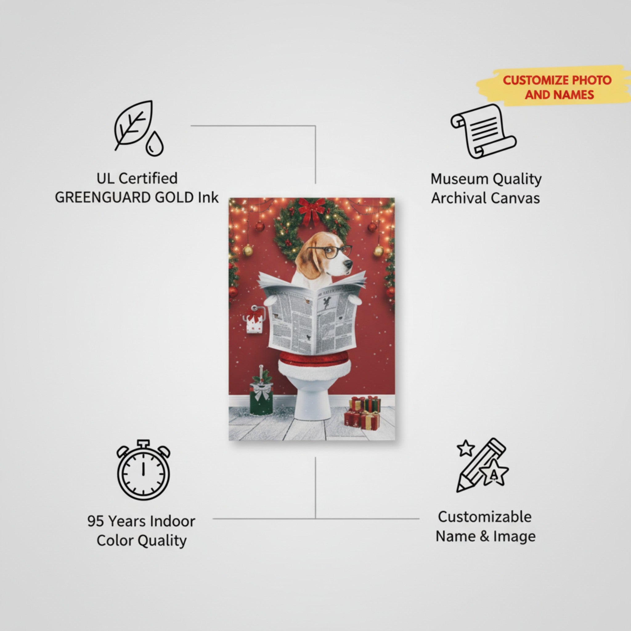 Funny Pet Christmas Canvas - Personalized Dog on Toilet Reading Newspaper Art