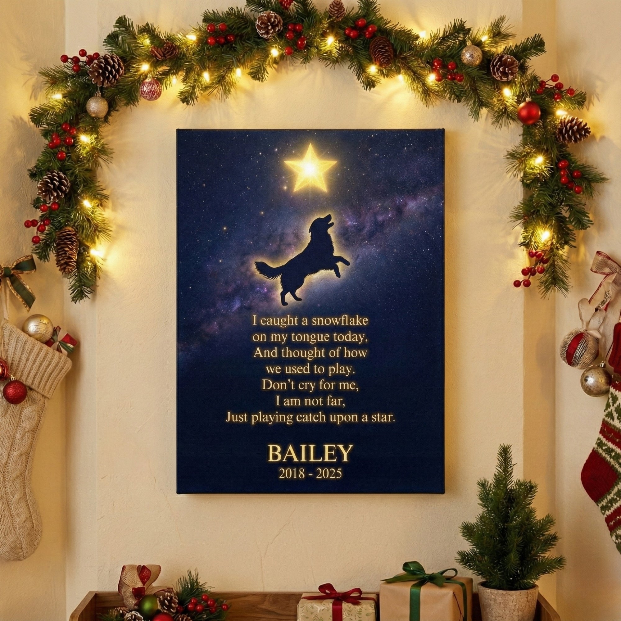 Just Playing Catch Upon a Star - Personalized Dog Memorial Canvas