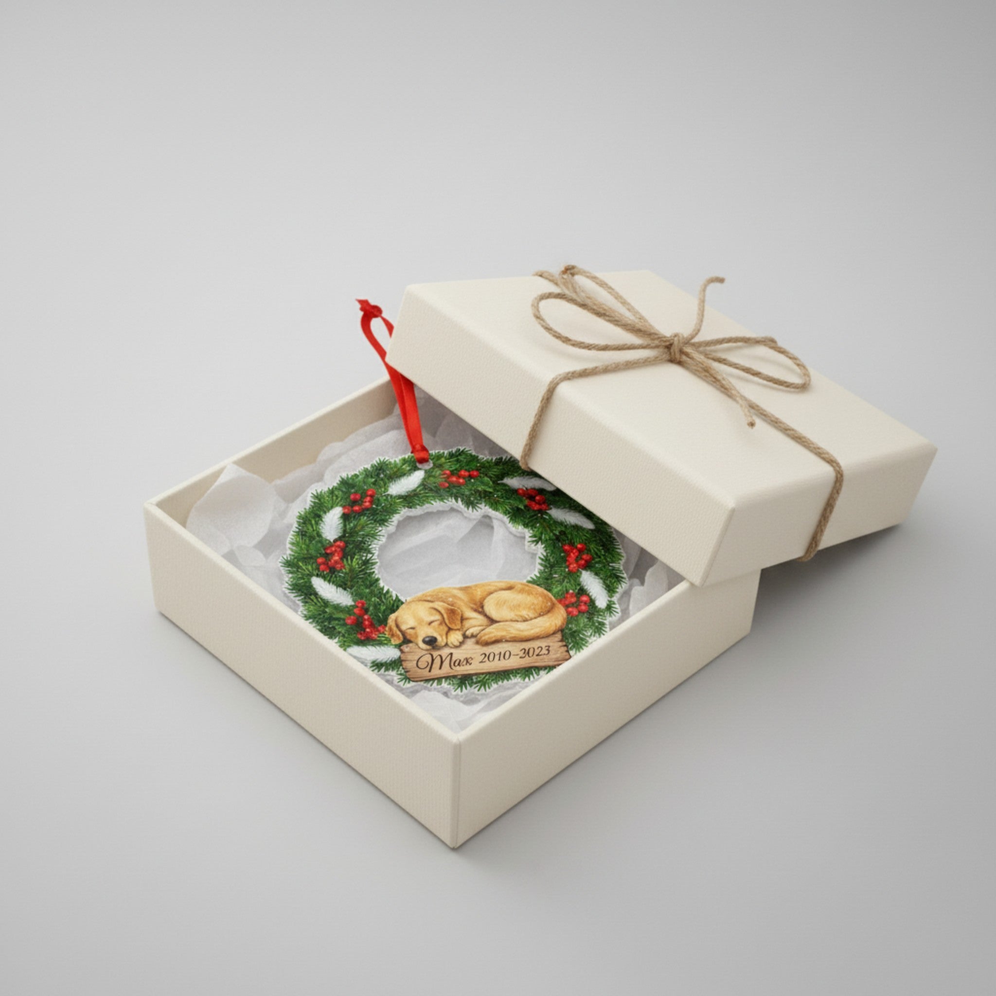 The elegant wreath design frames your pet's image beautifully, making it a meaningful addition to your tree year after year. Perfect for honoring a pet's memory or gifting to fellow animal lovers, this ornament serves as a heartfelt tribute during the season of remembrance.