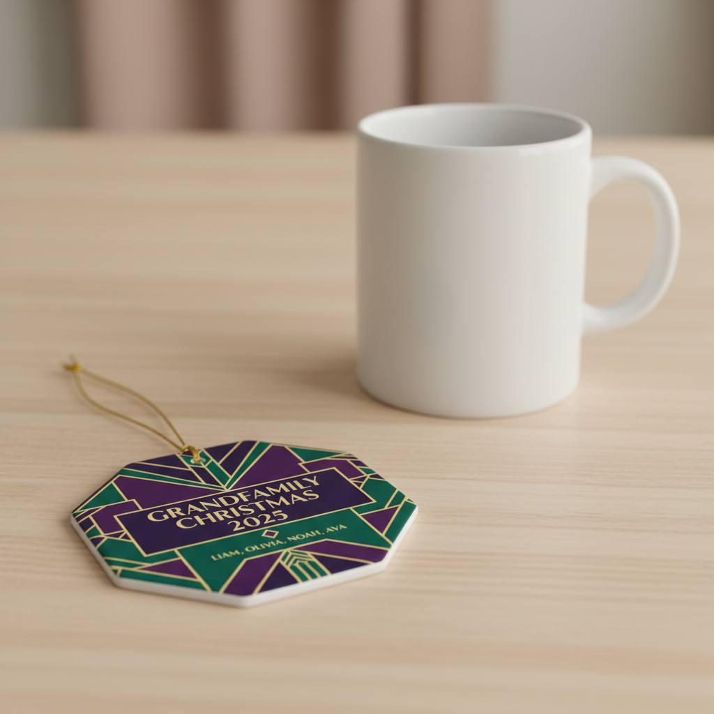 Celebrate your beautiful lineage with this stunning, personalized grandfamily Christmas ornament. It's a timeless Art Deco keepsake designed to honor every precious member of your growing family tree.
