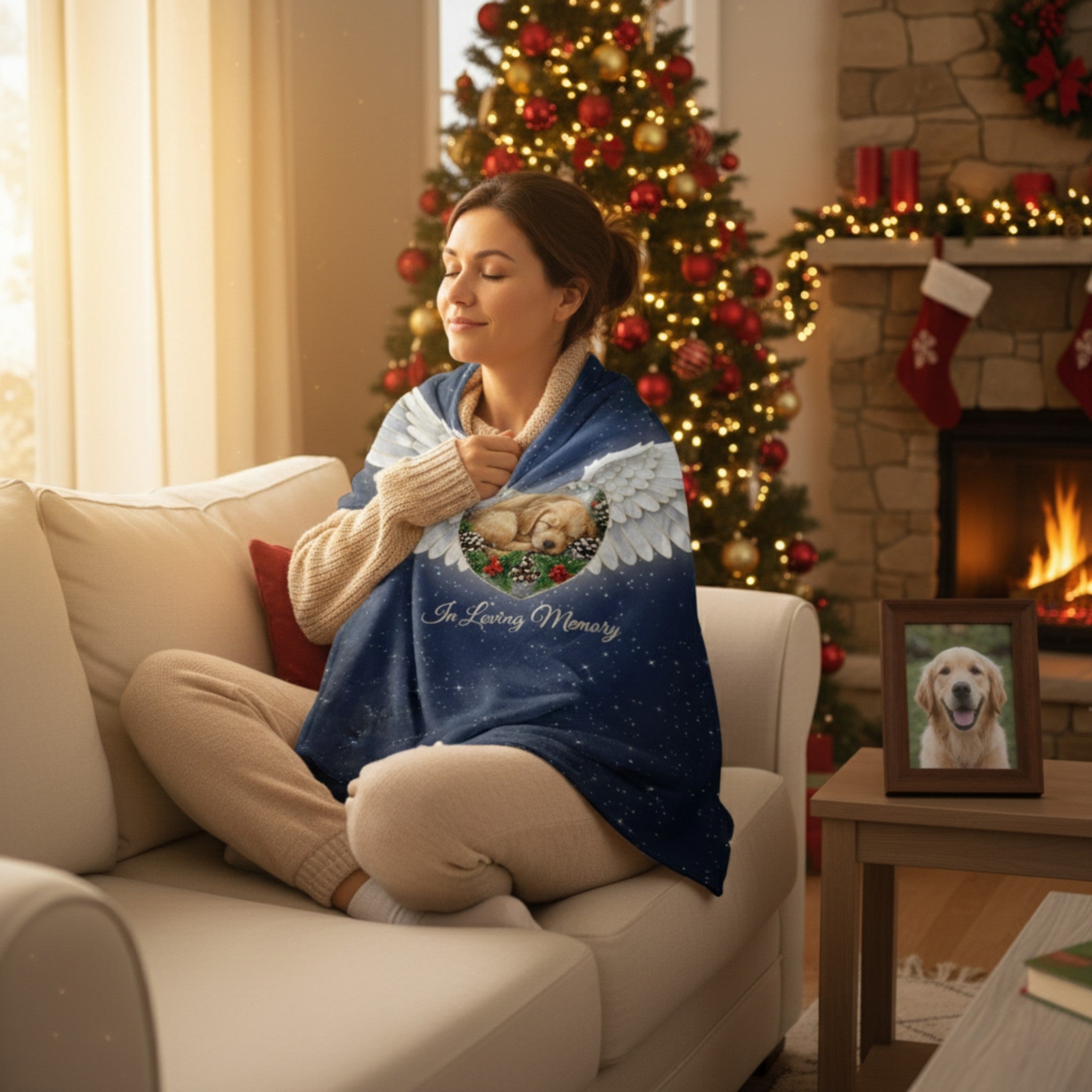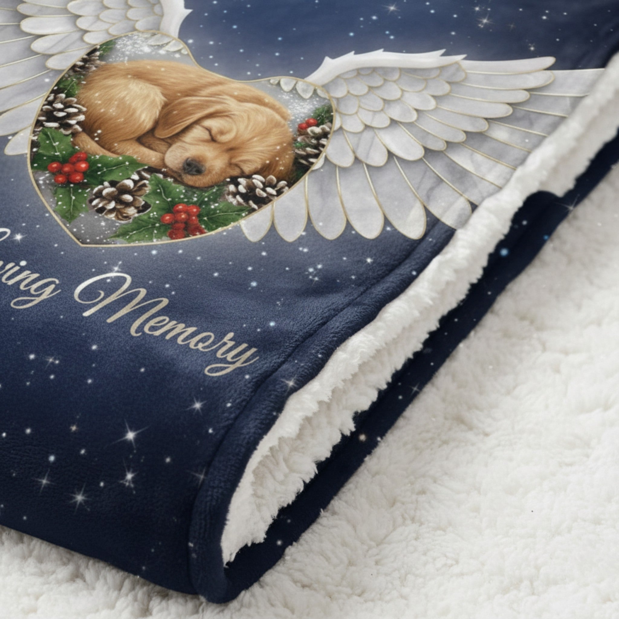 "In Loving Memory" Angel Wings Dog Memorial Blanket - Starry Night Keepsake"In Loving Memory" Angel Wings Dog Memorial Blanket - Starry Night Keepsake