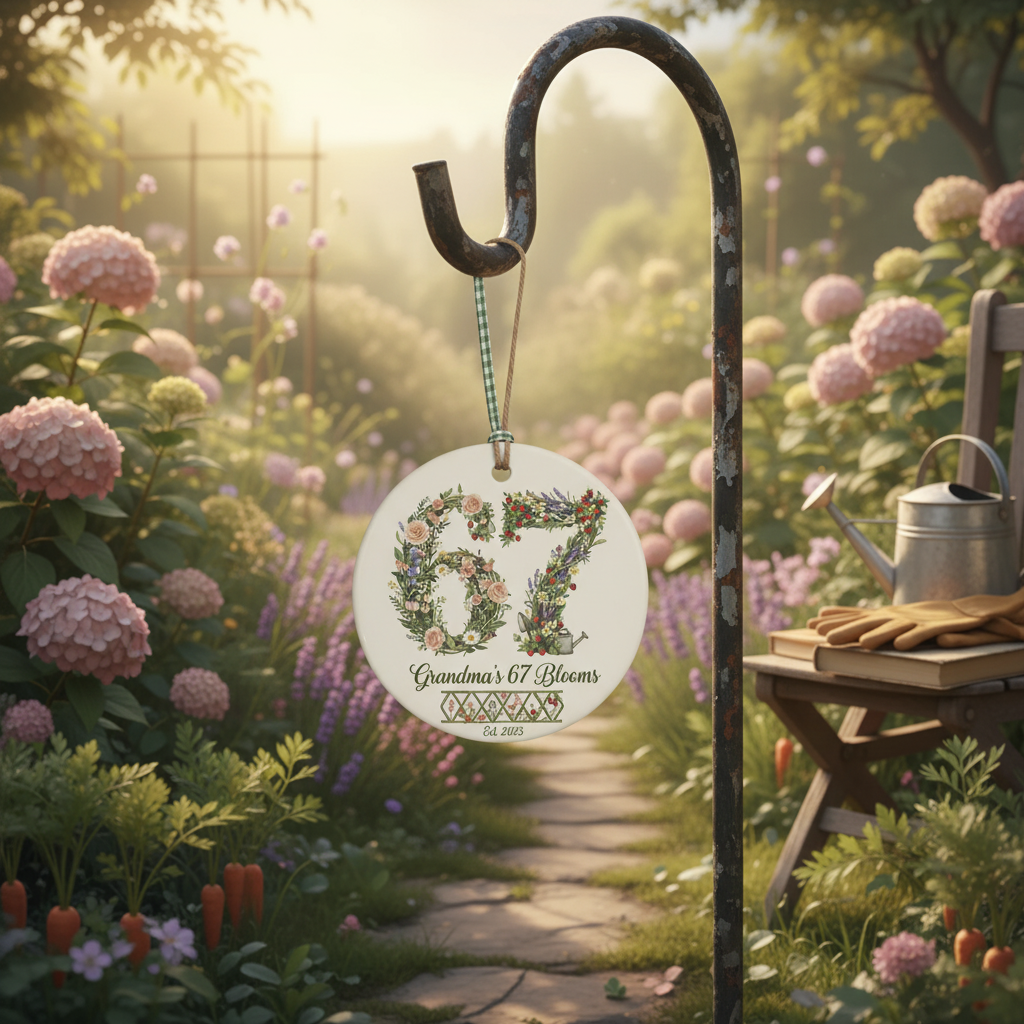 • Celebrate Grandma’s milestone with a personalized ceramic ornament featuring a floral “67” design—symbolizing her years of love, growth, and beautiful memories in full bloom.