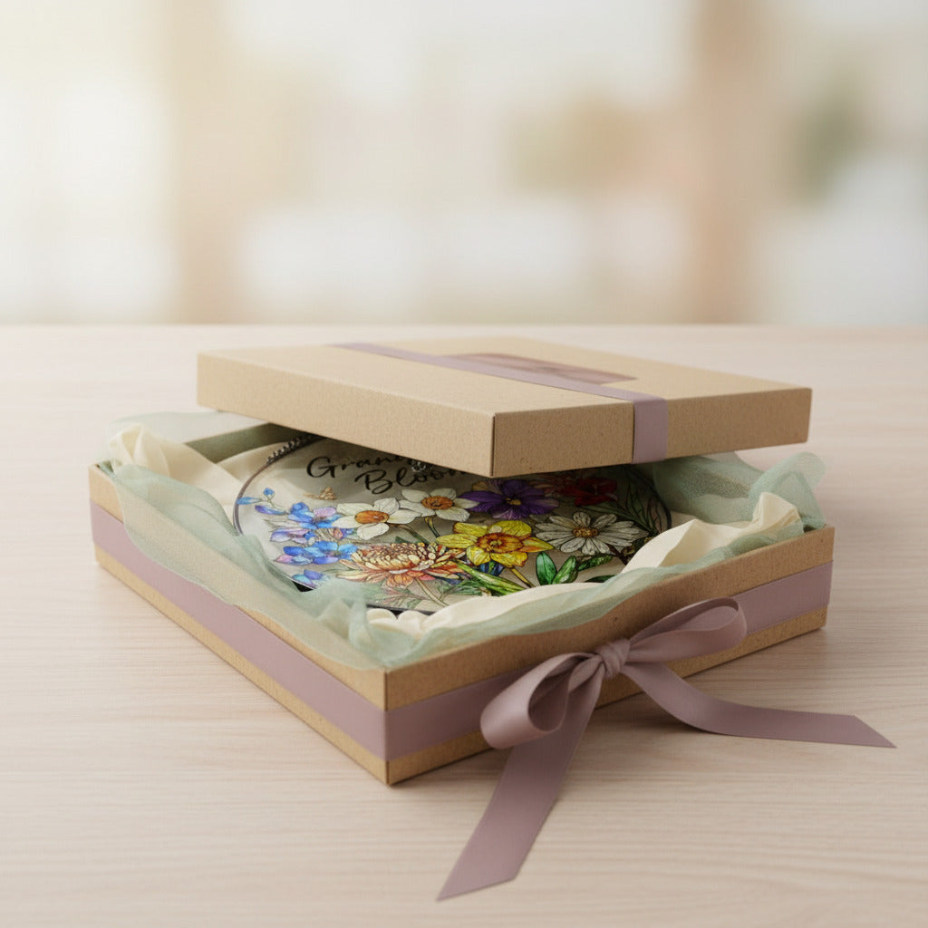 Description Celebrate Grandma this Mother’s Day with a personalized stained glass suncatcher that blooms with color and love—turning sunlight into a daily reminder of her cherished family.
