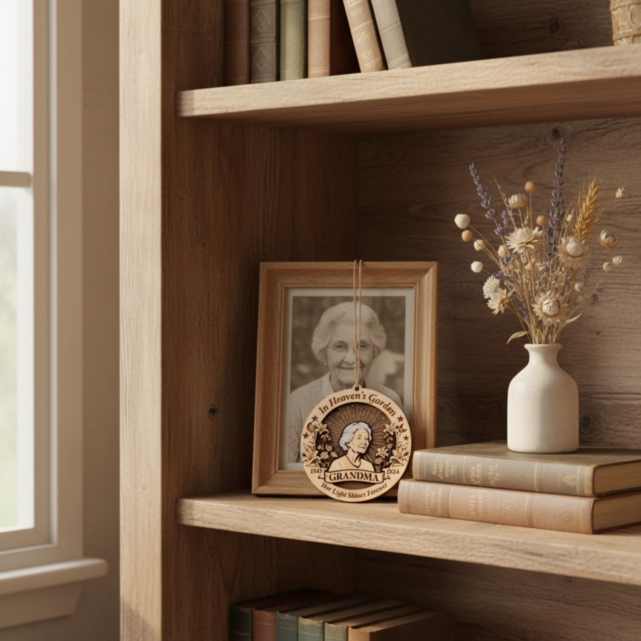 Please upload a high-quality, clear portrait of your grandmother for the best result. Double-check all spellings for her name or title (e.g., Grandma, Nana) and the dates to ensure your memorial ornament is a perfect and lasting tribute to her memory.