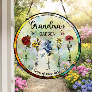 Birth Flower Garden Stained Glass Suncatcher Ornament for Grandma – Personalized Month Bloom Window Keepsake