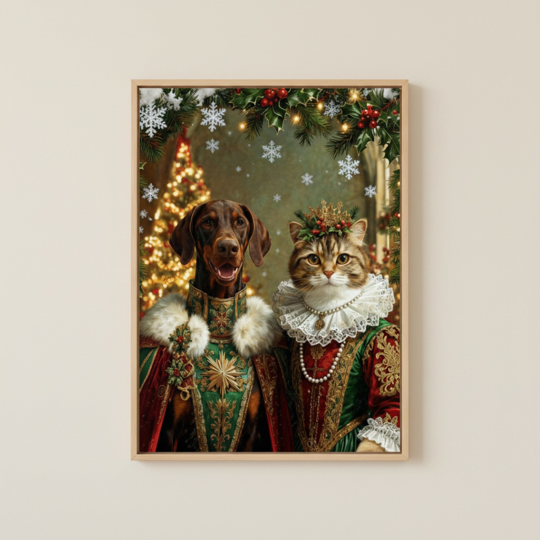 Custom Pet Portrait Canvas - Personalized Dog & Cat Royal Christmas Art Print