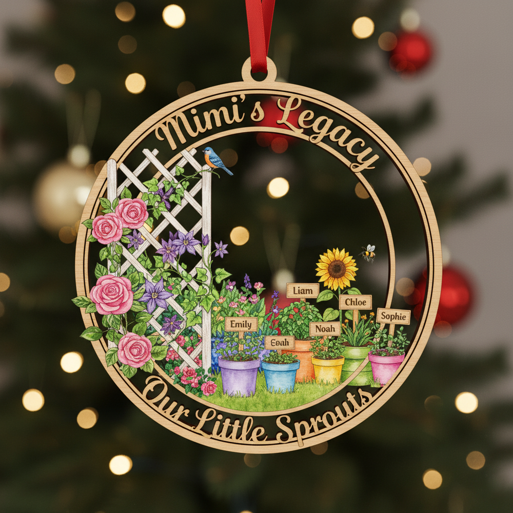 The Garden Legacy Wooden Ornament for Grandma or Nana – Personalized Grandkids Name Flower Pot Keepsake turns her love into a blooming scene. Each pot holds a grandchild’s name amid colorful flowers, creating a handcrafted ornament that honors her growing garden of family and joy.