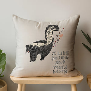 The I Like You and Your Tooty Booty – Interactive QR Throw Pillow Heartfelt Edition adds humor and cheeky charm to your love story. With its playful skunk design and the funny quote “I like you and your tooty booty,” this pillow is perfect for couples who enjoy laughter and lighthearted moments together. More than just décor, it includes a scannable QR code that reveals heartfelt love quotes whenever you scan it — turning fun into lasting affection.