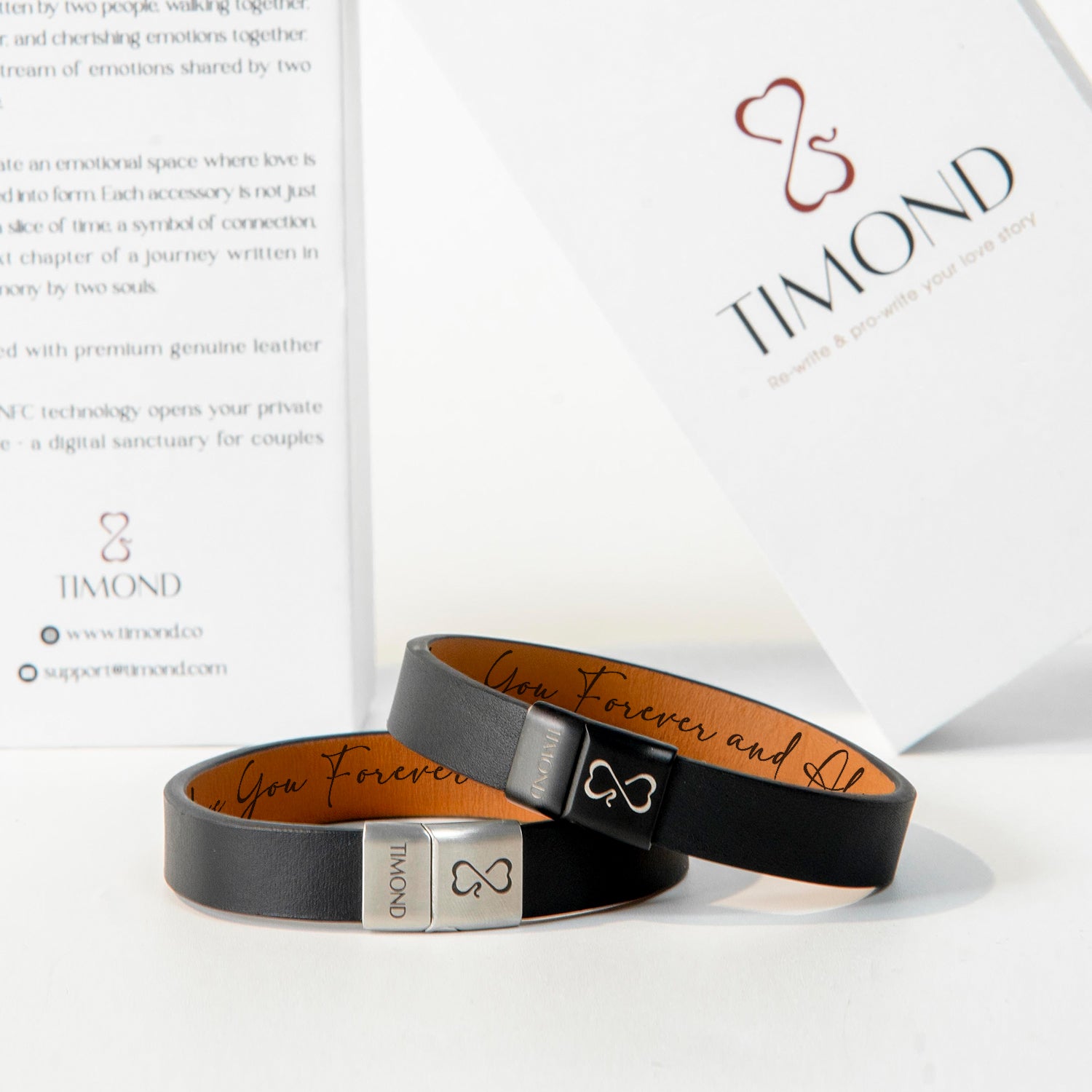 Celebrate your love with a pair of timeless Timond Box Leather NFC Couple Bracelets.