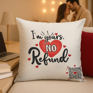 I’m Yours No Refund Interactive QR Throw Pillow Heartfelt Edition