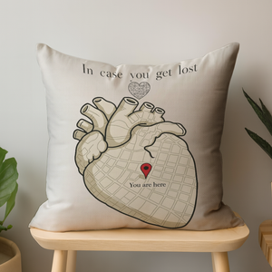 The In Case You Get Lost Interactive QR Throw Pillow Heartfelt Edition celebrates love with a meaningful and artistic design. Featuring an anatomical heart styled like a map with the message “You are here,” this pillow symbolizes how love always guides you back home. More than just décor, it includes a scannable QR code that reveals heartfelt love quotes whenever you scan it — a daily reminder that your partner is your true destination.