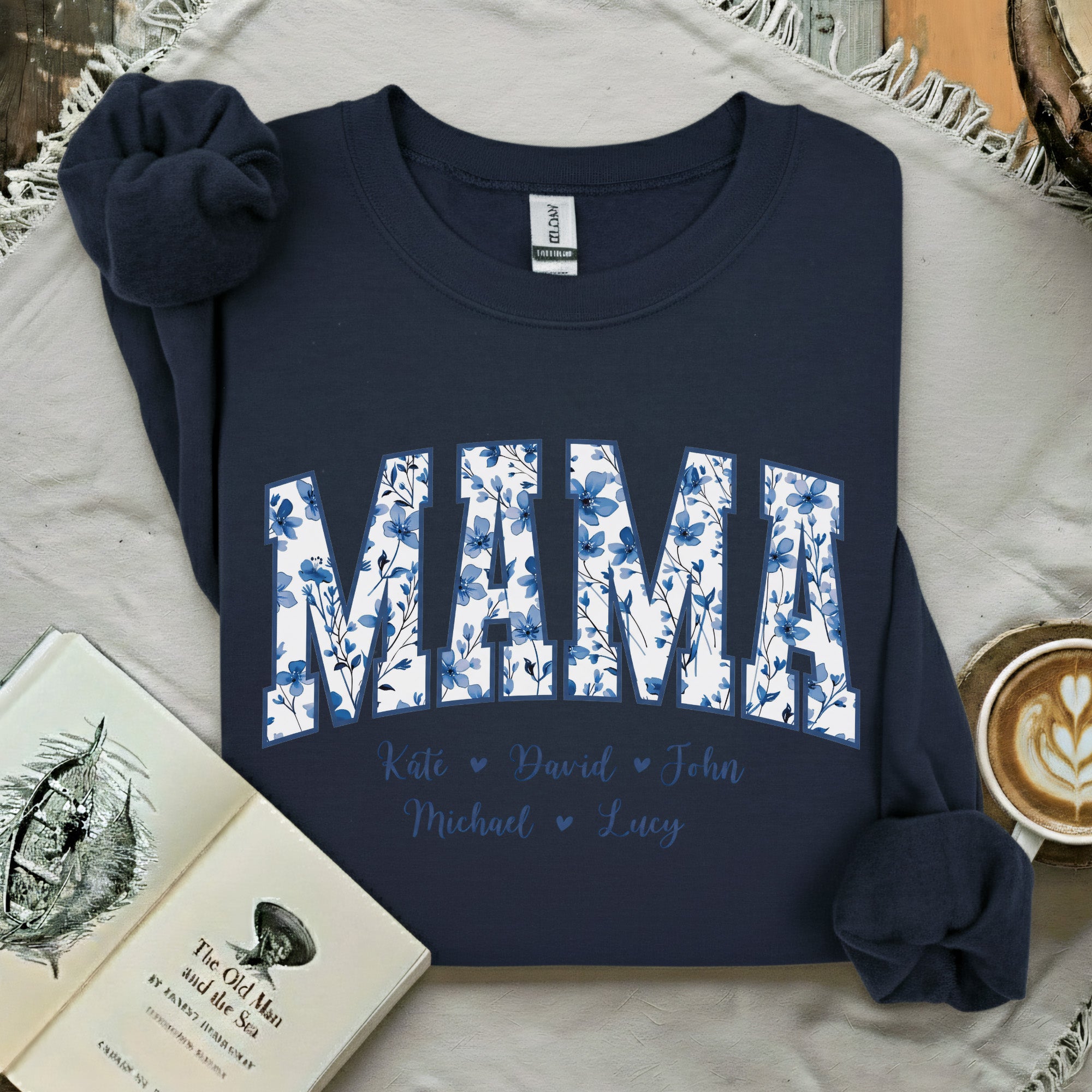 Celebrate family love in style with this Personalized MAMA Sweatshirt, featuring elegant floral-filled block letters and your children’s names printed underneath. Both modern and sentimental, this sweatshirt transforms everyday wear into a meaningful keepsake that moms will cherish.