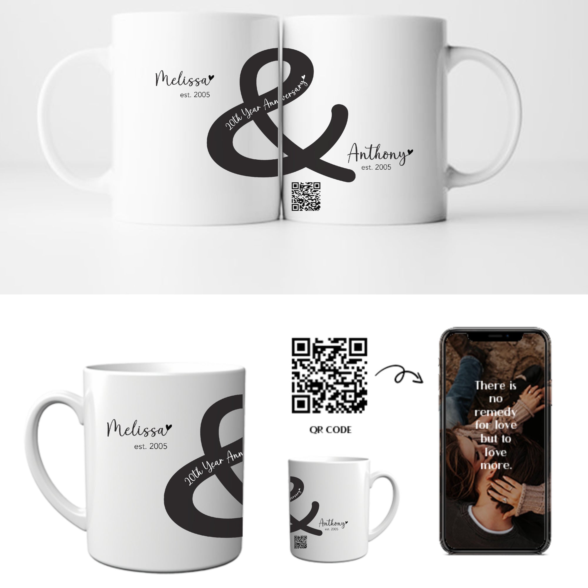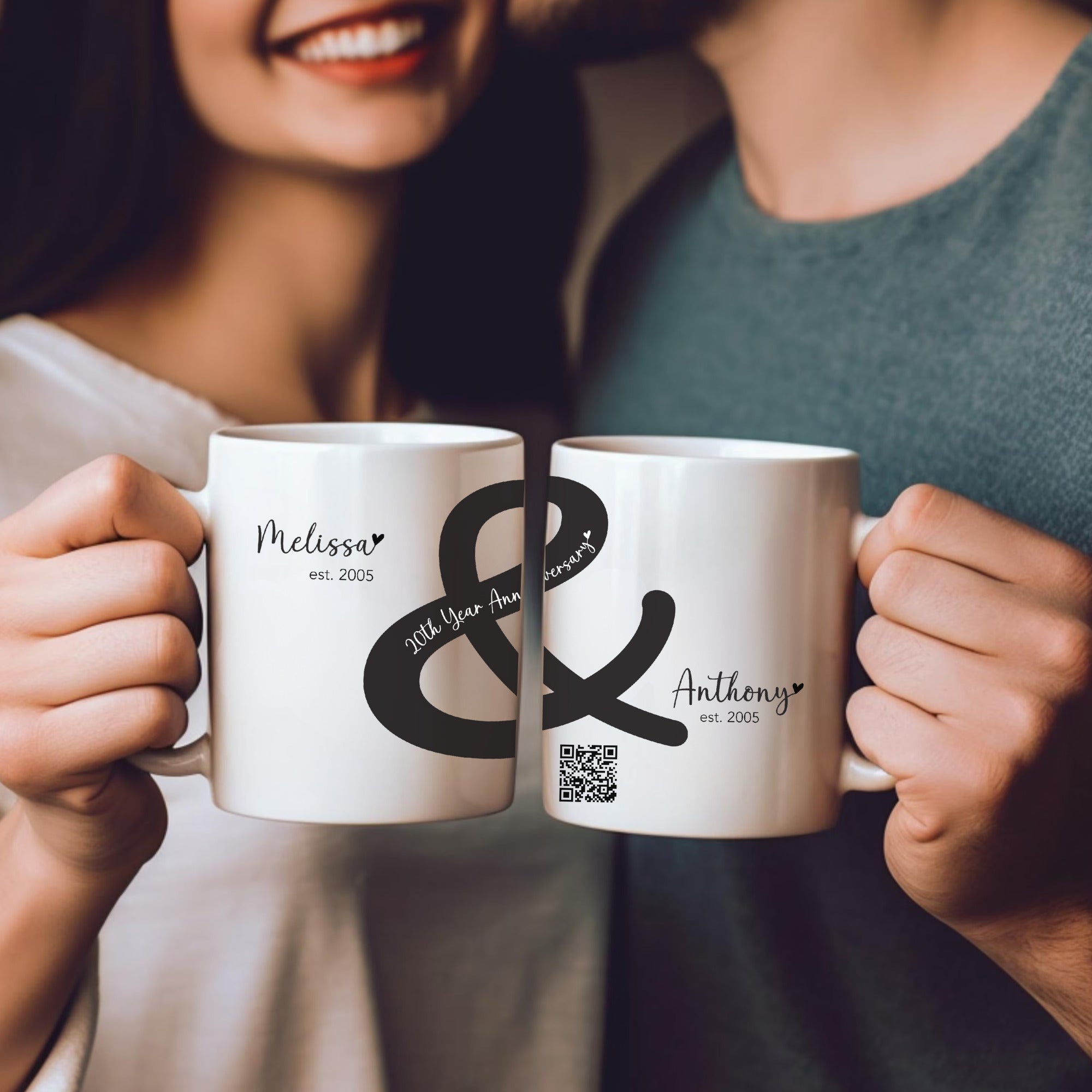 Custom Names & Dates: Personalize each mug with your names and your anniversary year (“est. 2005”), plus milestone message.