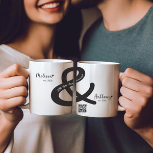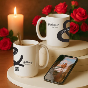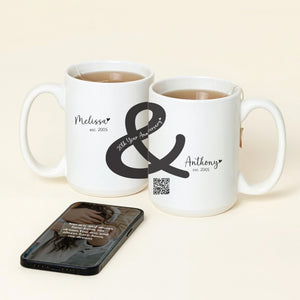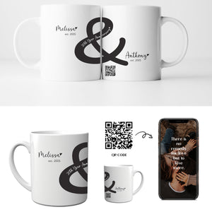 Personalized Ampersand Anniversary Couple Interactive QR Mug with Names