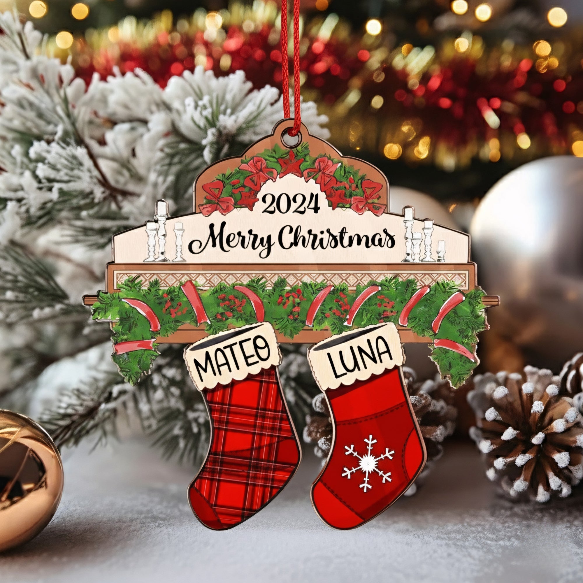 Bring warmth, joy, and family love to your Christmas tree with this Personalized Family Stocking Ornament 2025. Designed to capture the cozy feeling of the holidays, this charming fireplace ornament features up to 8 custom stockings — each printed with your family members’ names.