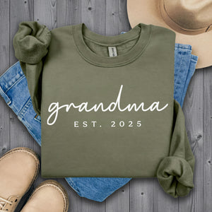 Celebrate the beautiful moment she became a grandmother with this Personalized Grandma EST Sweatshirt, featuring an elegant script design and a custom EST year. It’s a heartfelt keepsake that honors love, legacy, and family — perfect for cozy mornings, holiday gatherings, or everyday wear.