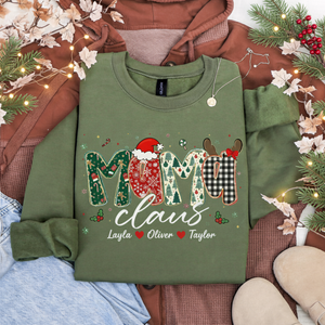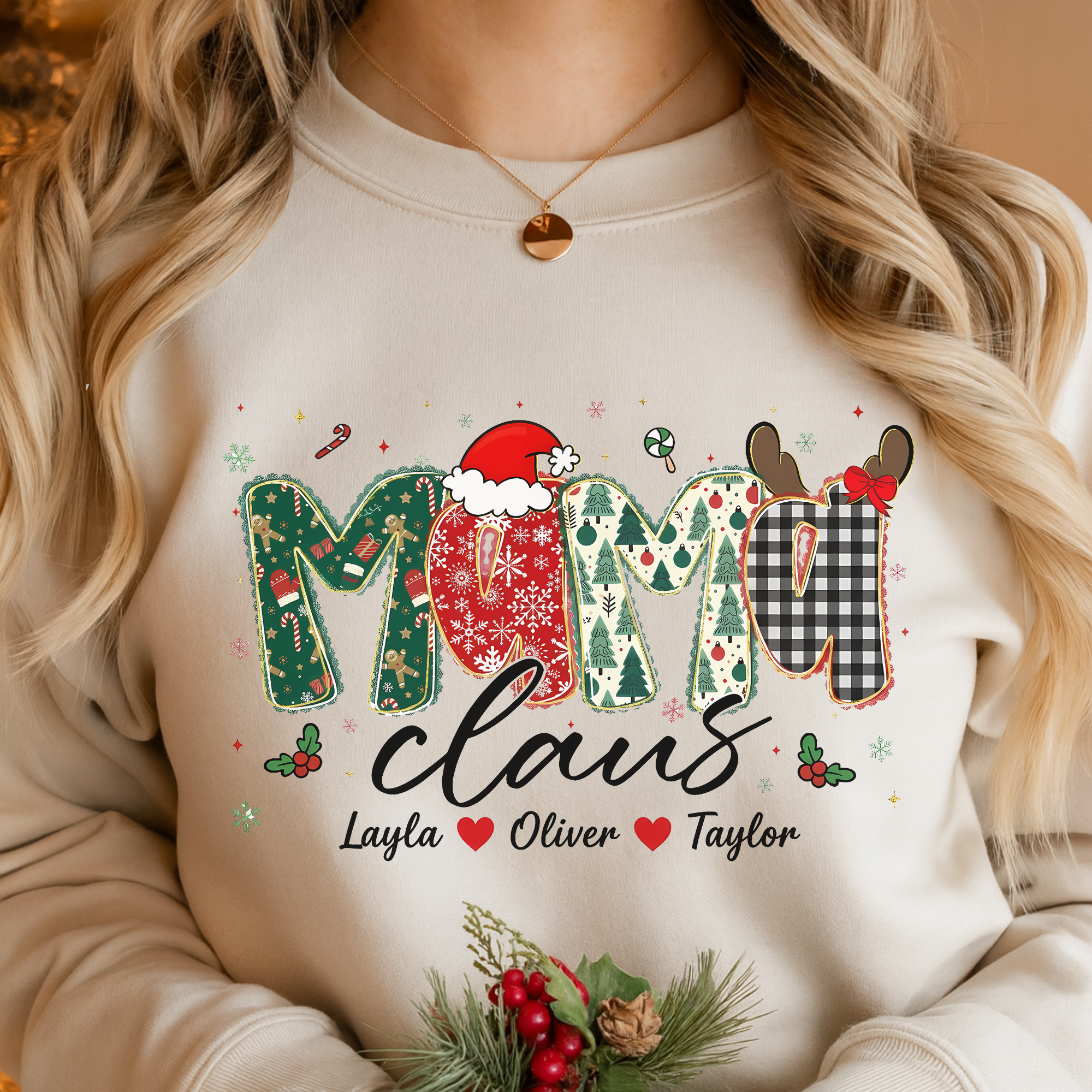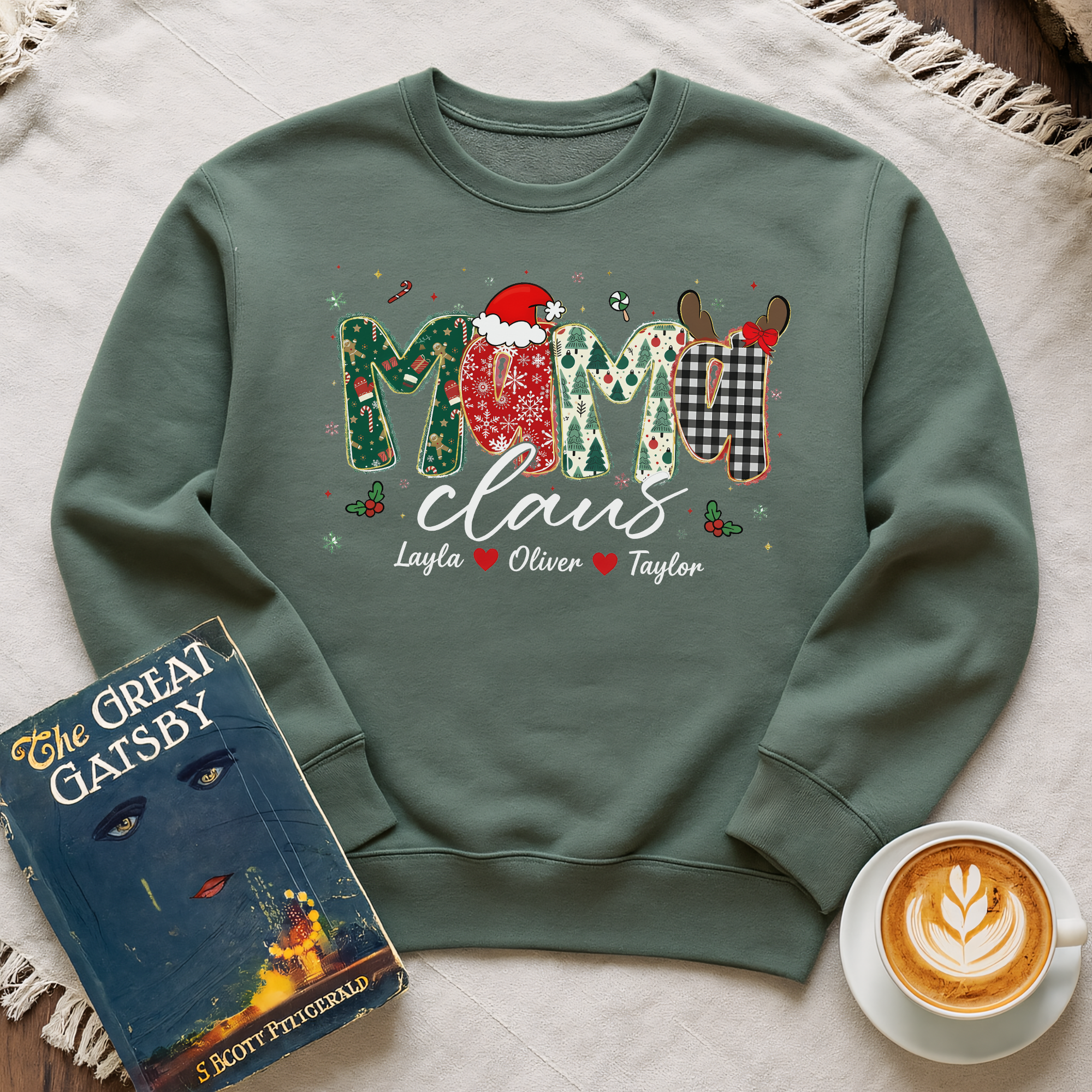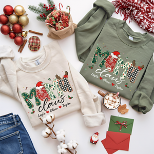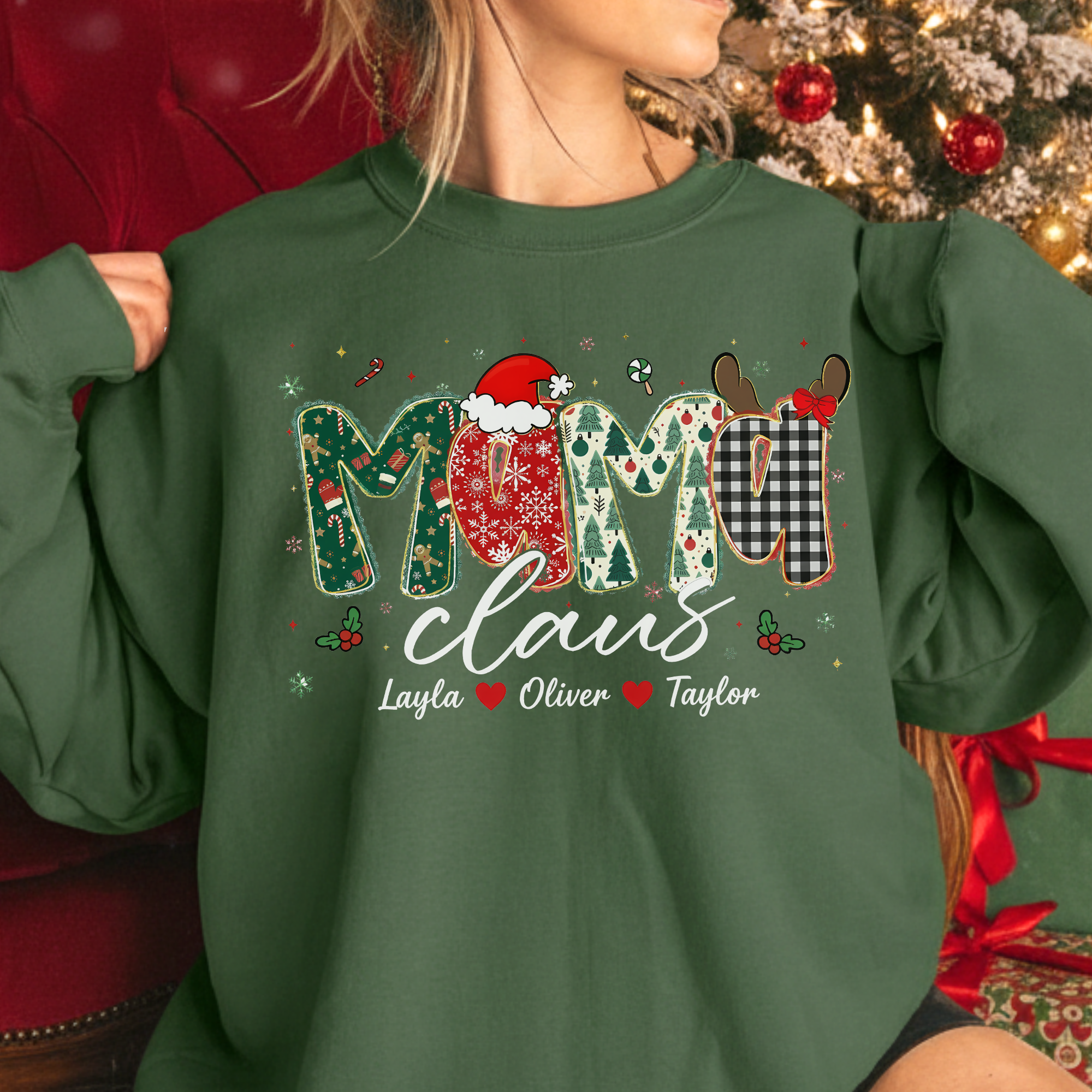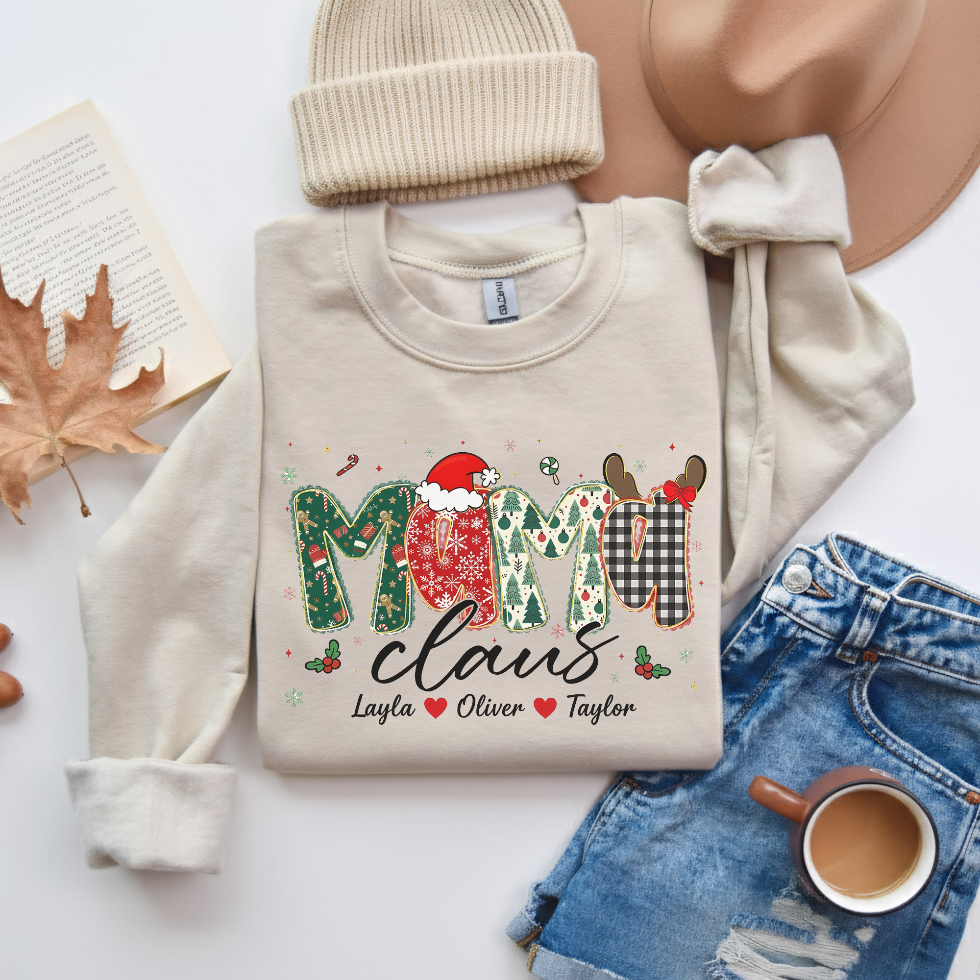 Personalized “Mom Claus” Christmas Sweatshirt with Kids’ Names