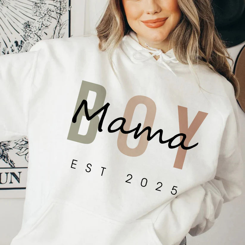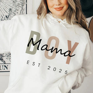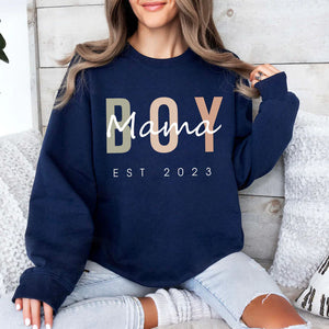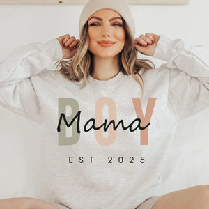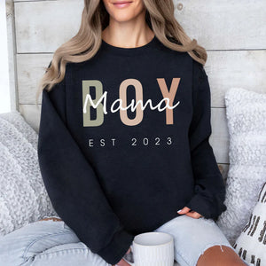 Mark the year your greatest adventure began with this Personalized Boy Mama Sweatshirt. Featuring the bold “BOY Mama” design and a custom EST year, this cozy sweater is a timeless keepsake that celebrates the love between a mom and her son.
