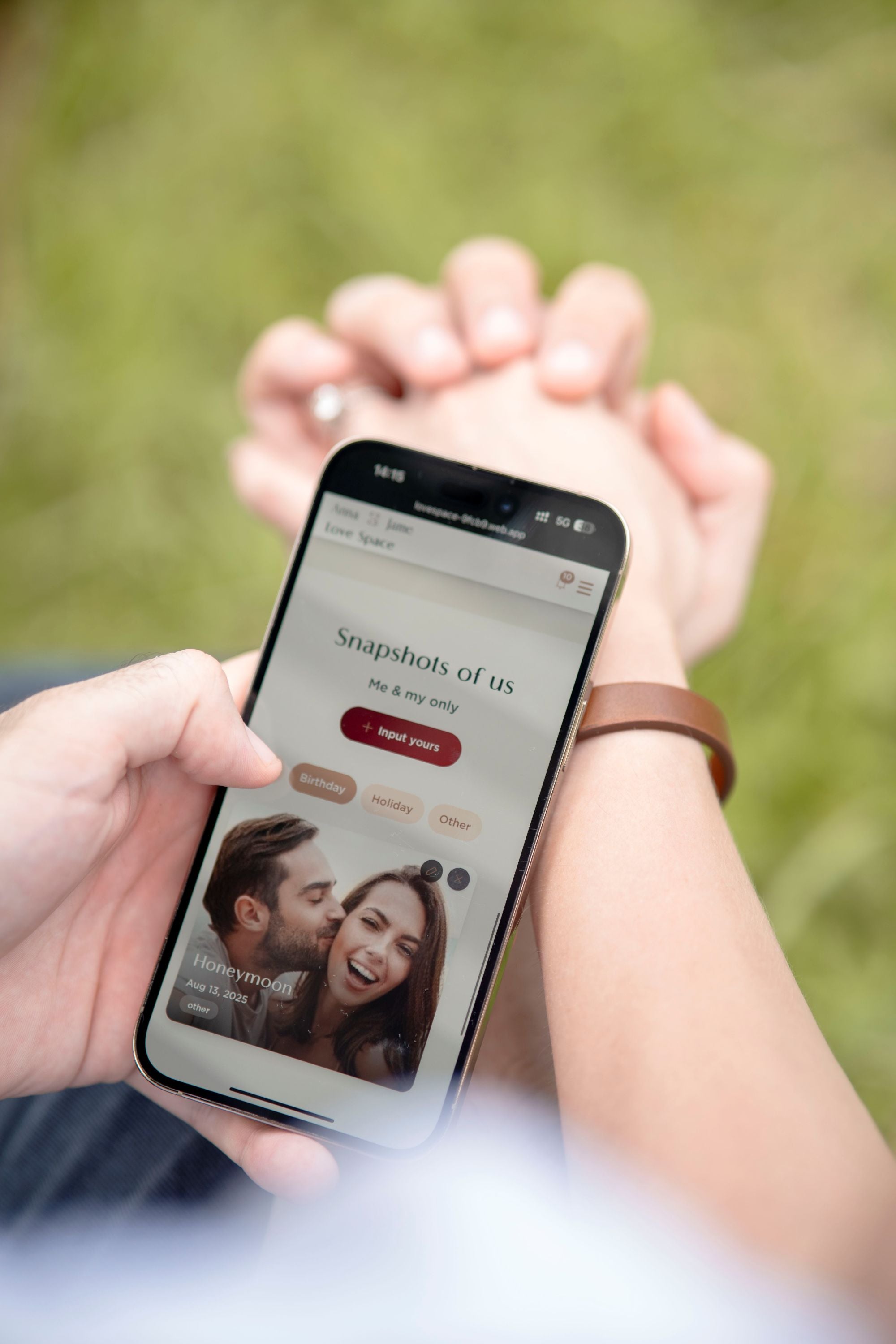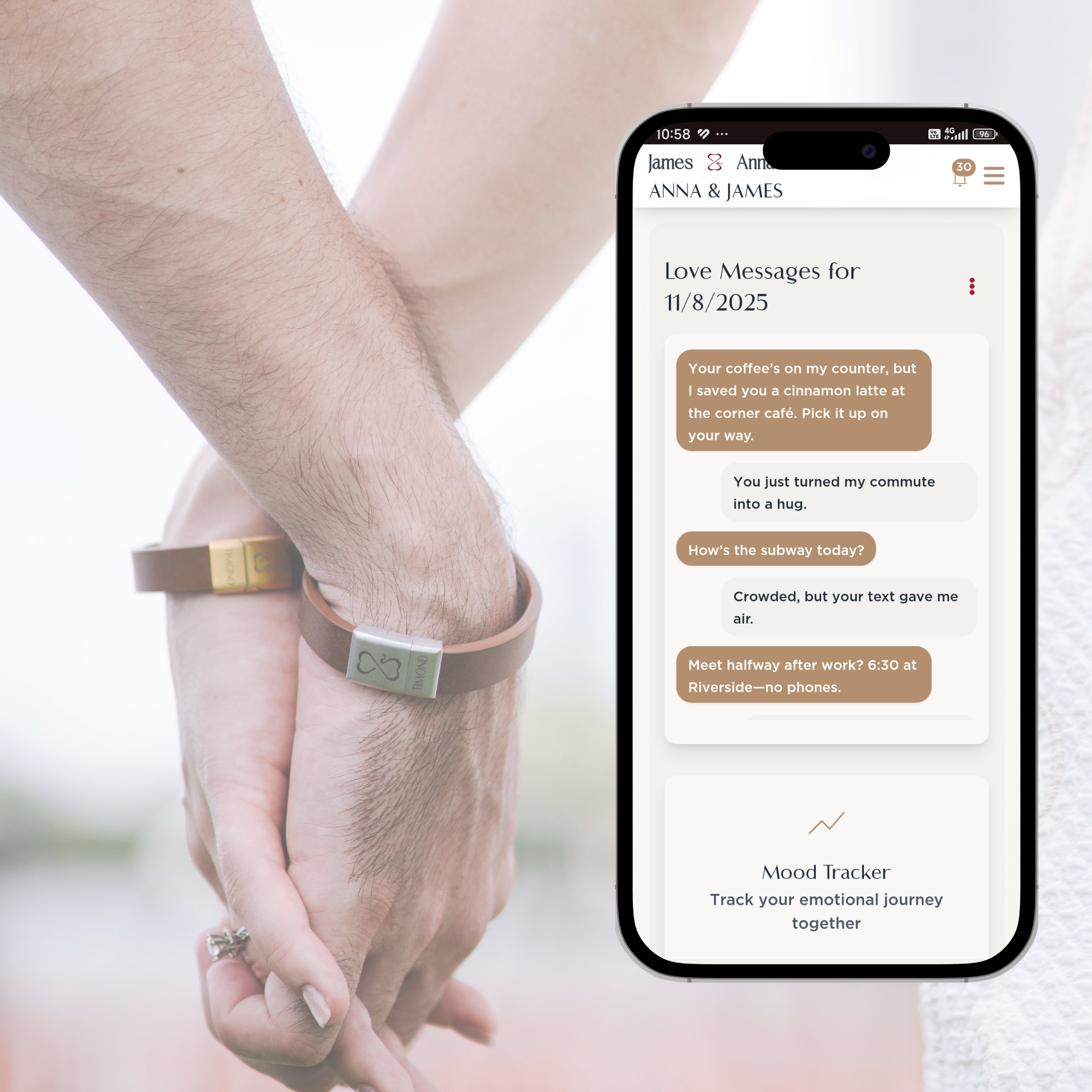 No app to download. Tap your bracelet to open your shared space for photos, notes, playlists, and milestones—just for the two of you.