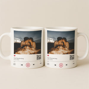 Turn your favorite song and photo into a daily keepsake with this Personalized Music Player Mug. Featuring your uploaded photo, custom song title, artist name, and a scannable Spotify QR code, this mug makes every sip a memory of your love and music.