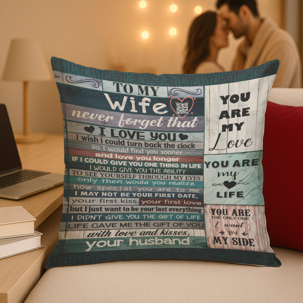 Personalized To My Wife Never Forget That I Love You Interactive QR Throw Pillow Heartfelt Edition