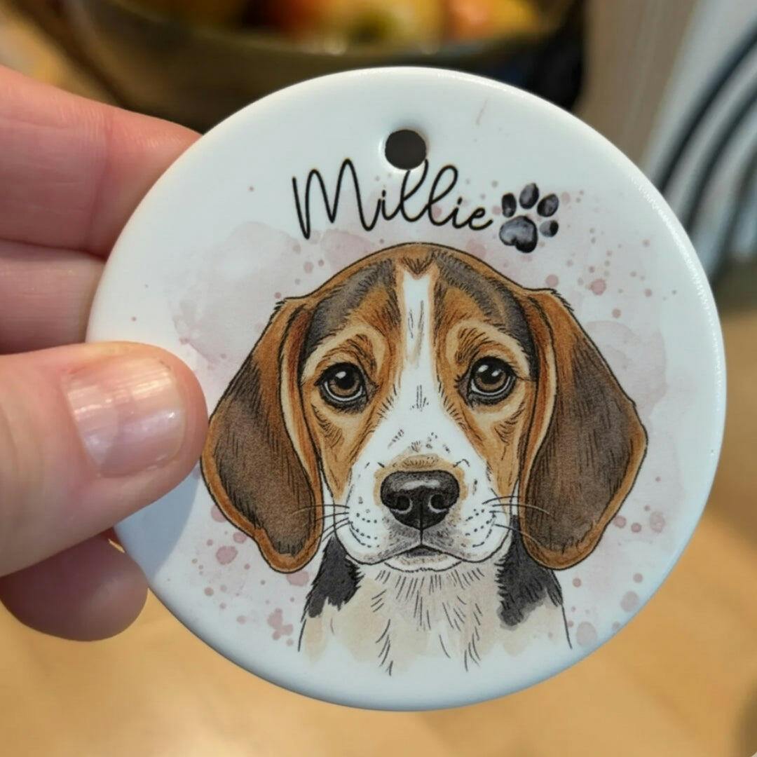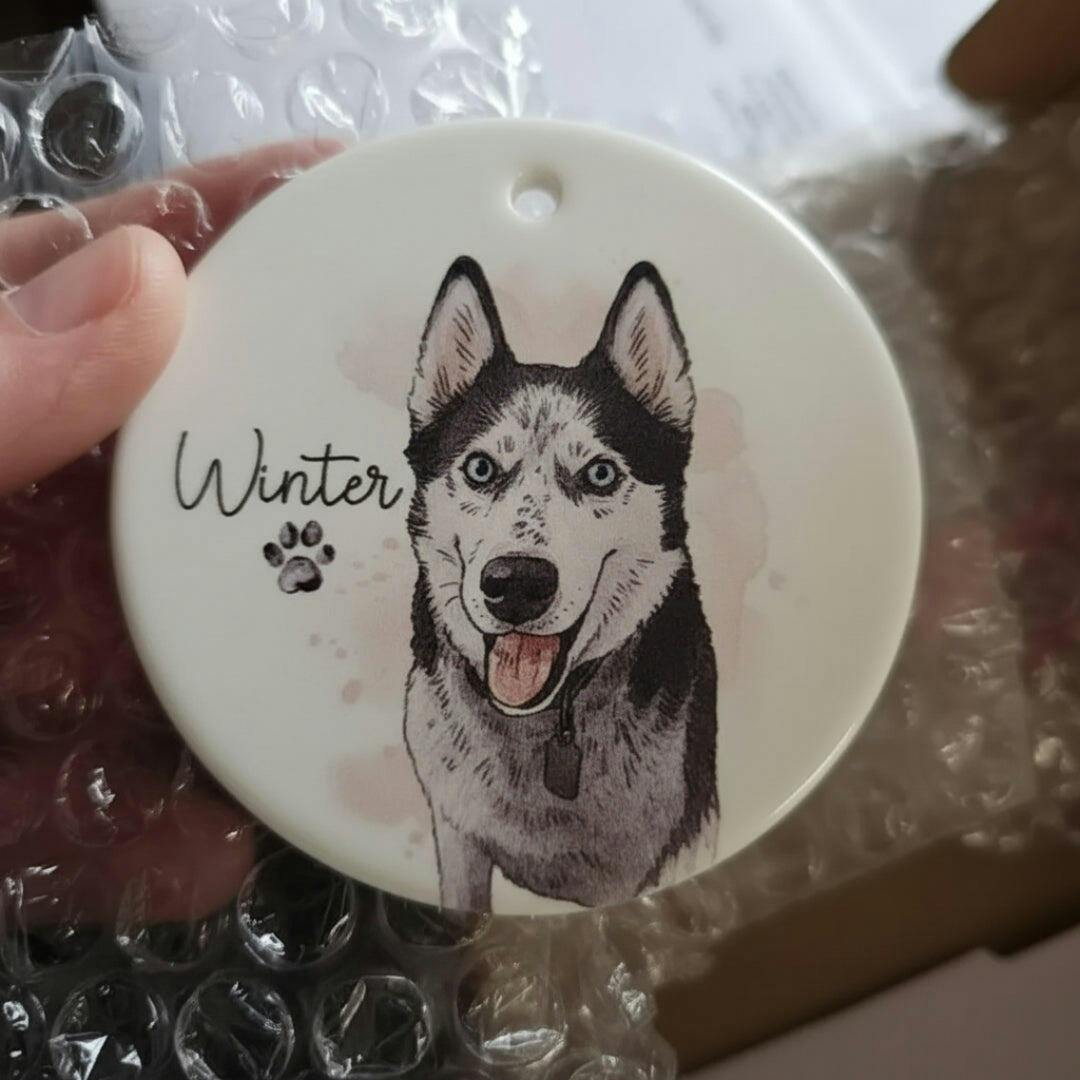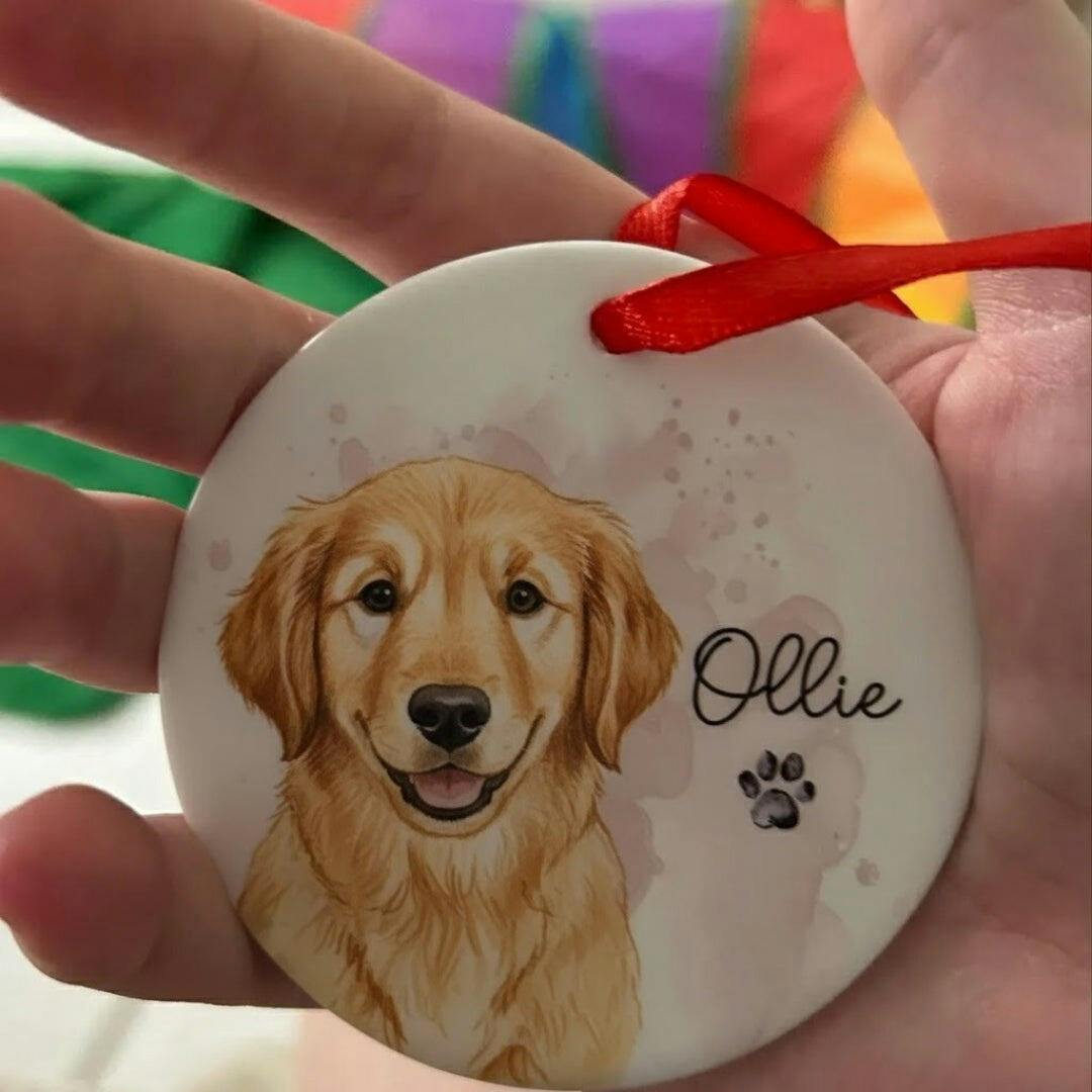 Christmas Watercolor Pet Portrait Ceramic Ornament for Dog Lovers
