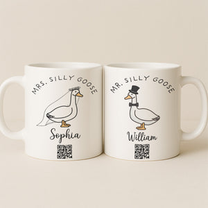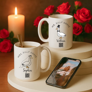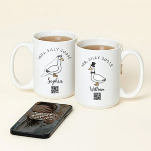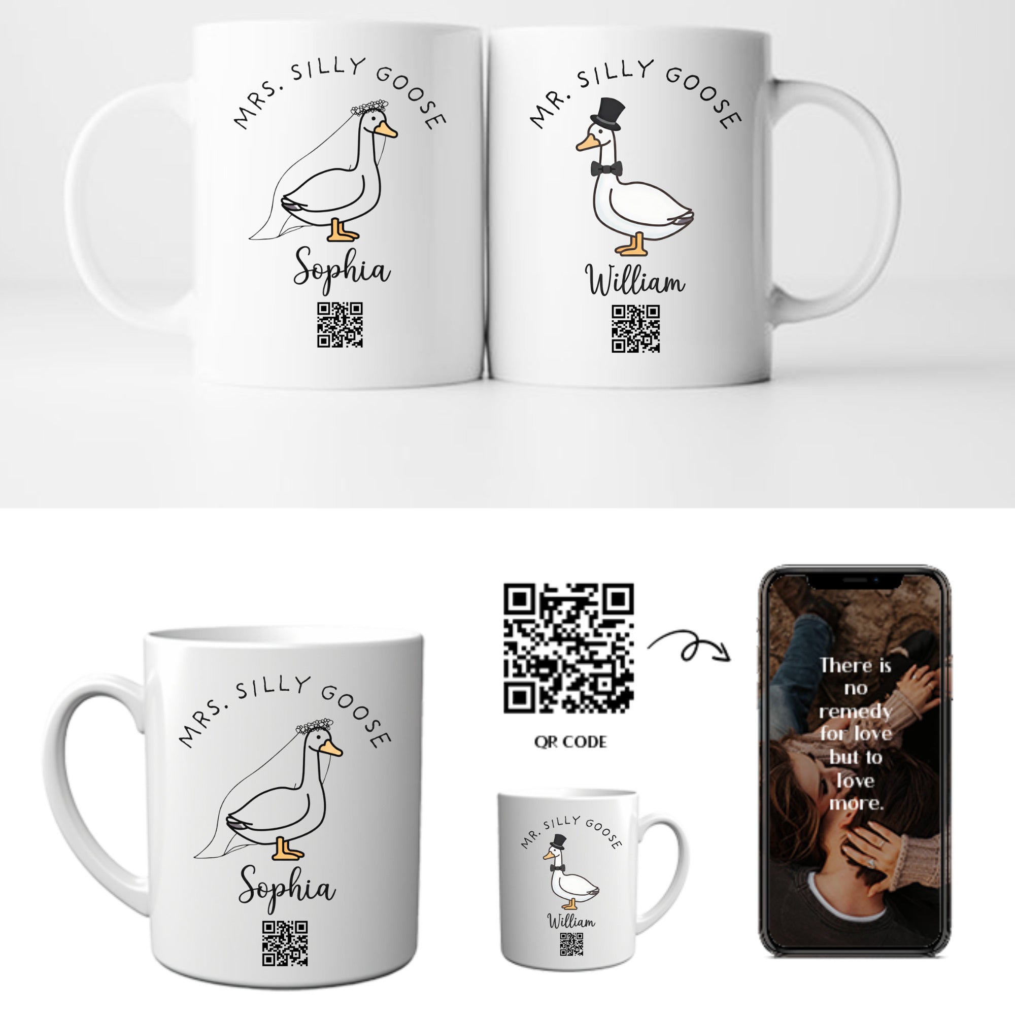 QR Code Silly Goose Couple Mug, Personalized Names, Funny Gift for Couples
