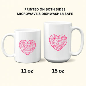 Celebrate the amazing woman in everyday moments. This two‑sided mug pairs a playful “WIFE Nutrition Facts” front with a scannable QR code and a bold WIFEY back layered with her name. Scan the heart‑placed QR to open a mobile landing page; each scan reveals a rotating love note—sweet lines, prompts, or mini challenges—that turns coffee time into a daily check‑in. Personalize once with her name; the same design and QR print consistently across all mugs in your order. Perfect for anniversaries, Valentine’s Day, birthdays, Christmas, or a “just because” surprise.